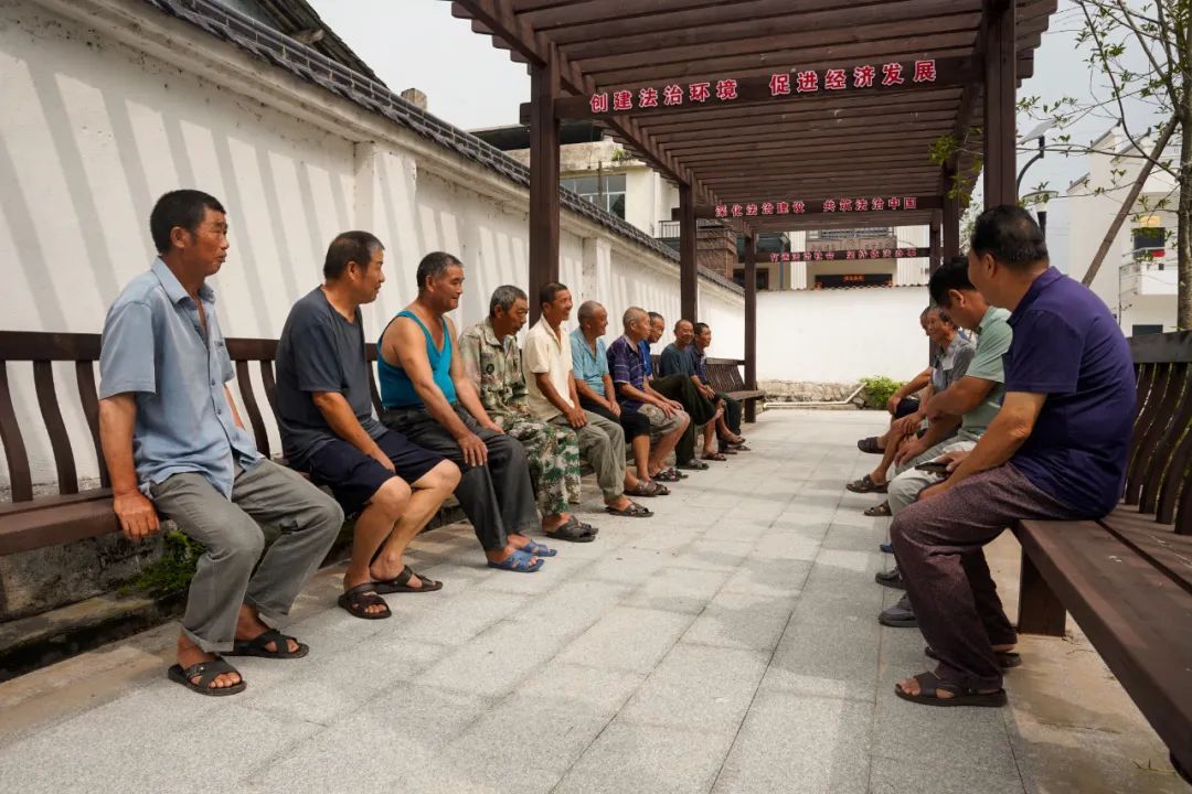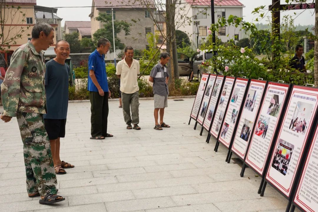 村民在楊億文化主題公園游玩 “這村里的公園建起來了,晚上散步也好,跳舞也好,也是個好去處?!睏畲笫搴屠吓笥褌冏跅顑|文化主題公園的長廊拉家常,大家你一句我一句,歡聲笑語不斷。長廊一旁陳列著幾塊展板,上面展示了楊億生平事跡與法律知識,吸引路過的村民觀看?!?/span>