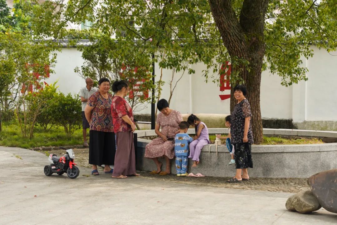 “這地方挺好的,帶著小孫女走走,也沾一沾老祖宗的‘文氣’?!?月3日,在浦城縣仙陽鎮下洋村楊億文化主題公園,村民王阿姨帶著孫女在楊億雕像前拍照。拍完后,小孫女從臺階上爬了下來,稚氣地喊著跑向小伙伴,開始愉快地玩耍。一旁幾位阿姨在樟樹下乘涼,其中一位手拿扇子,為懷里的孫子驅散夏日的暑氣……