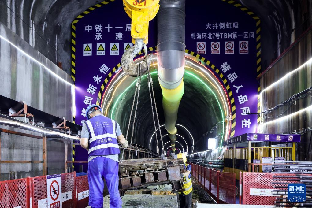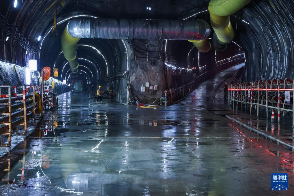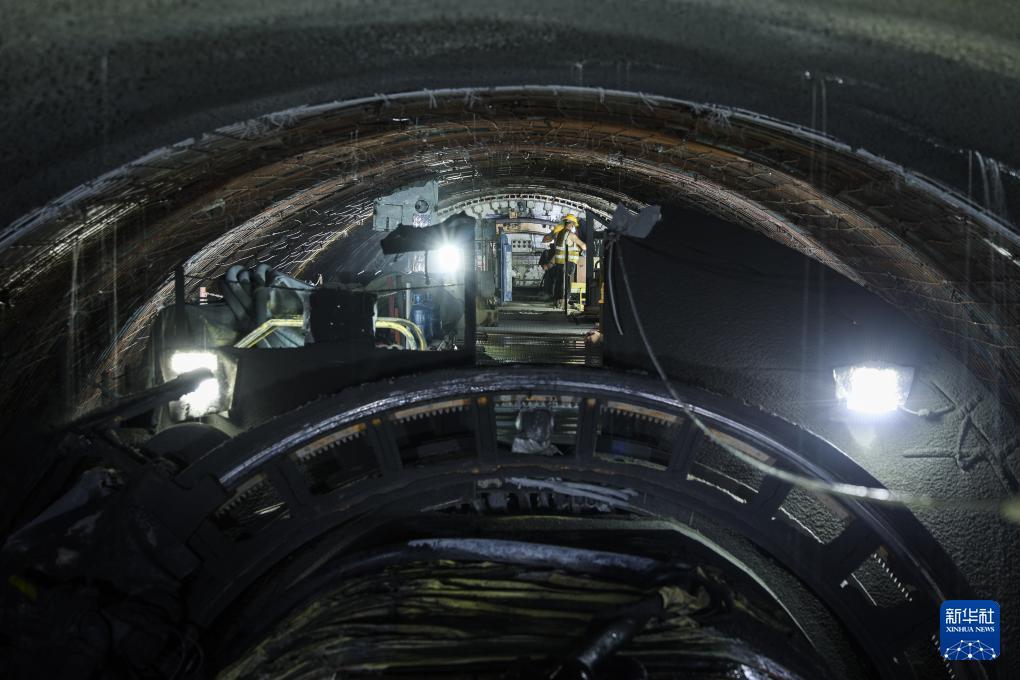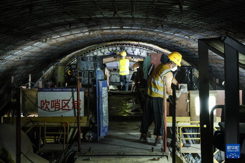 施工人員在大仁支洞工區主支洞交叉口作業(8月11日攝)。 日前,中鐵十一局承建的環北部灣廣東水資源配置工程B2標“粵海環北7號”全斷面敞開式硬巖掘進機(TBM)掘進突破700米,項目施工從啟動適應期邁入高效推進期。 環北部灣廣東水資源配置工程是國家水網骨干工程之一,建成后將優化區域水資源配置格局。 新華社記者 劉大偉 攝