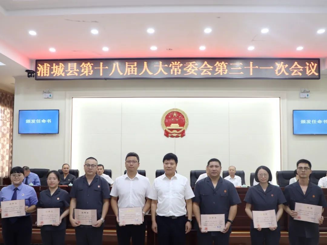 憲法宣誓 楊文龍向新任命人員頒發了任命書,會議舉行了憲法宣誓儀式。 浦城縣人民代表大會常務委員會決定任命名單 (2025年8月28日浦城縣第十八屆人民代表大會常務委員會第三十一次會議通過) 任命吳昊為浦城縣人民政府信訪局局長。 浦城縣人民代表大會常務委員會任免名單 (2025年8月28日浦城縣第十八屆人民代表大會常務委員會第三十一次會議通過) 免去林曉華的浦城縣人民法院副院長職務; 任命吳積標為浦城縣人民法院副院長、審判委員會委員、審判員。 浦城縣人民代表大會常務委員會任免名單 (2025年8月28日浦城縣第十八屆人民代表大會常務委員會第三十一次會議通過) 任命江歡為浦城縣人民法院生態環境審判庭(綜合審判庭)副庭長,免去其浦城縣人民法院水南人民法庭副庭長職務; 任命詹先分為浦城縣人民法院仙陽人民法庭副庭長,免去其浦城縣人民法院執行庭副庭長職務; 任命何雅婷為浦城縣人民法院水南人民法庭副庭長; 任命章溫平為浦城縣人民法院審判員。 浦城縣人民代表大會常務委員會任命名單 (2025年8月28日浦城縣第十八屆人民代表大會常務委員會第三十一次會議通過) 任命黃海茜為浦城縣人民檢察院檢察委員會委員。 |