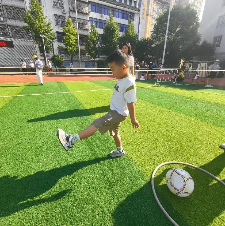 朱砂啟智和擊鼓明志 同時作為南平市首批中小學體育試點校,光明中心小學將“以體育人”理念深度融入教育實踐,今年創新性地將傳統入學儀式升級為“沐光而行 未來可期”主題成長禮。通過“傳統文化浸潤+體育精神培育”雙主線設計,為2025級新生打造了兼具人文底色與健康底色的開學“第一課”,特別設置“運動第一課”——將體育測試轉化為新生適應教育的重要載體。在“射門我最準”“運球小能手”“看誰跑的快”“跳繩我最棒”四大趣味項目中,孩子們身著運動裝,在綠茵場奔跑、跳躍、協作,用汗水打破陌生感,以團隊競技培育拼搏精神。