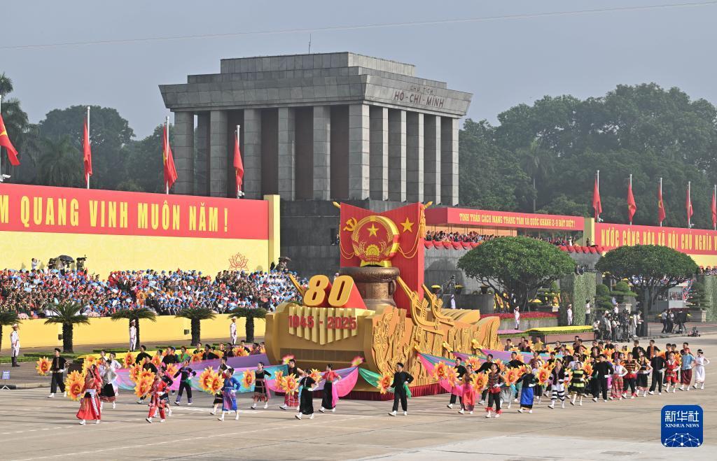這是9月2日在越南河內巴亭廣場拍攝的八月革命暨國慶80周年紀念活動現場。新華社記者 李響 攝 越共中央總書記蘇林致辭表示,80年前,胡志明主席在巴亭廣場發表《獨立宣言》,宣告越南民主共和國的誕生,開啟了越南獨立與自由的新紀元。蘇林說,面向未來,越南共產黨確立了2045年建國100周年的目標,將越南建設成富強、繁榮、幸福的國家,這是全民族的渴望。