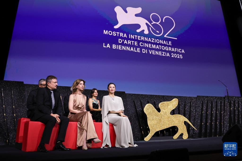 9月6日,在意大利威尼斯,主競賽單元評委出席閉幕式。 第82屆威尼斯國際電影節(jié)6日晚在意大利水城威尼斯的利多島落下帷幕。 新華社記者 李京 攝