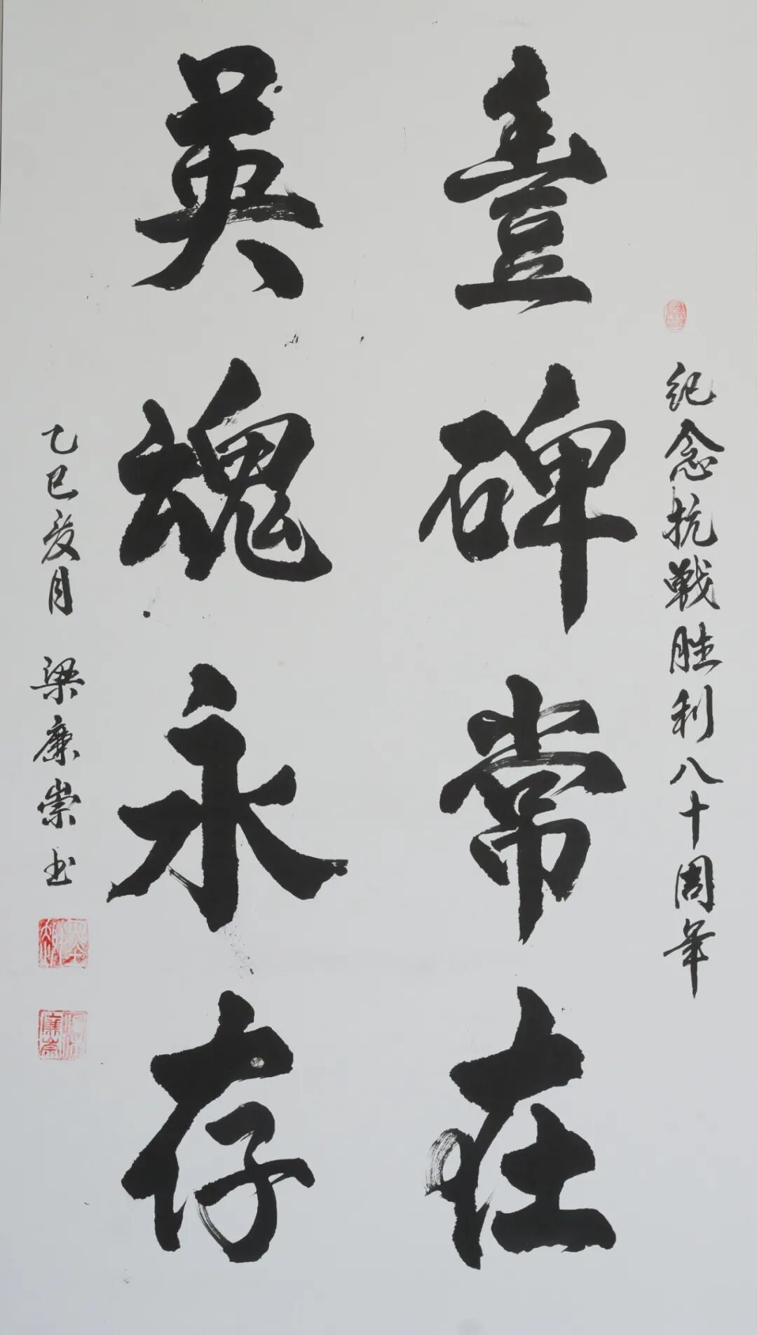 展覽吸引群眾前去觀賞 走進展覽現場,一幅幅書畫作品整齊陳列,每一幅都含老年藝術家們的深情與力量。書法作品中,有的筆力遒勁、氣勢磅礴,寫下“勿忘國恥,警鐘長鳴;銘記歷史,強我中華!”的鏗鏘誓言;有的娟秀工整、意蘊悠長,書寫著革命先輩的愛國詩篇,墨香里滿是對英雄的敬仰。繪畫作品則以生動的筆觸再現歷史場景——戰火紛飛中戰士們沖鋒陷陣的英勇身姿,長征途中彝海結盟的動人故事,生動再現了那段艱苦卓絕的烽火歲月,展現了中華兒女不屈不撓的偉大抗戰精神。