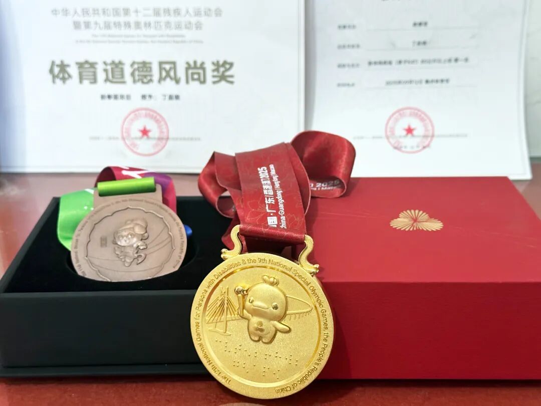 丁昌錦獲得的榮譽 2000年,丁昌錦出生于浦城縣石陂鎮岐山前村。5歲那年,他不幸觸碰高壓電,永遠失去了雙臂。一年后,父親在悲痛中離世。 繼父何光榮走進了他的生活。這個新的家庭,沒有把他當成一個需要特殊照顧的孩子。“昌錦,你沒有手,但你還有腳,還有腦子!你必須比別人更努力!”這成了繼父最常說的話。吃飯,不準別人喂,必須自己用腳,一次次失敗,一次次灑在到處,也必須自己吃完。穿衣、洗臉、寫字……所有生活瑣事,都被賦予了“訓練”的意義。繼父和母親還每天帶著他去跑步,風雨無阻。跑不動了,就在后面鼓勵,甚至嚴厲督促。 如今回想,昌錦明白了父母“狠心”背后深藏的愛。“他們不能照顧我一輩子,只有讓我自己站起來,才是真正的出路。”這份愛,為他日后走上體育之路打下堅實基礎。