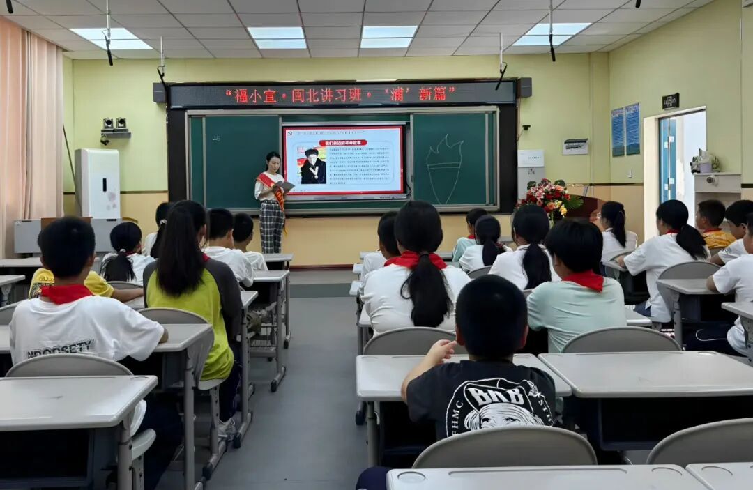 宣講員向學生們講述紅色革命故事 “9月3日的大閱兵同學們都看了嗎?請同學們分享一下自己的感悟……”紅色革命故事環(huán)節(jié),宣講員周靜蘭以九三閱兵、“九一八事變”為切入點,通過生動講述“革命‘五老’張金錢”的英勇事跡和感人故事,帶孩子們重溫革命歲月,用青春力量傳遞紅色星火,讓更多學生深入了解那段艱苦卓絕的歷史,感受革命先輩們?yōu)閲液兔褡褰夥哦⒂聤^斗的精神。