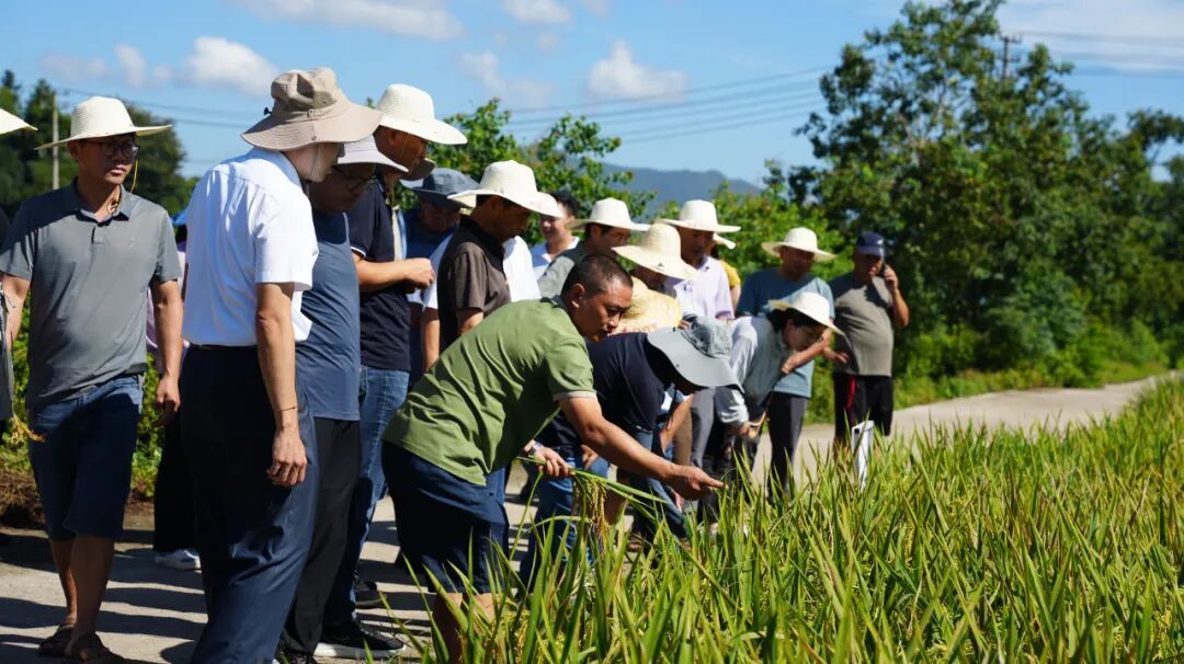 調(diào)研現(xiàn)場(chǎng) 觀摩團(tuán)先后深入仙陽(yáng)鎮(zhèn)永芳優(yōu)517示范基地、金福源品種基地、閩越山水等田間試驗(yàn)與推廣點(diǎn),實(shí)地查看了品種株型、分蘗情況、結(jié)實(shí)率、灌漿發(fā)育及成熟期轉(zhuǎn)色等關(guān)鍵性狀,并對(duì)田間栽培管理、病蟲(chóng)害防控、肥水管理與機(jī)械化作業(yè)等技術(shù)要點(diǎn)進(jìn)行了詳細(xì)了解和現(xiàn)場(chǎng)詢(xún)問(wèn)。與會(huì)專(zhuān)家與企業(yè)代表、種植大戶(hù)就品種表現(xiàn)、加工適配性改良及后續(xù)產(chǎn)業(yè)化推廣等問(wèn)題展開(kāi)了深入交流與探討。