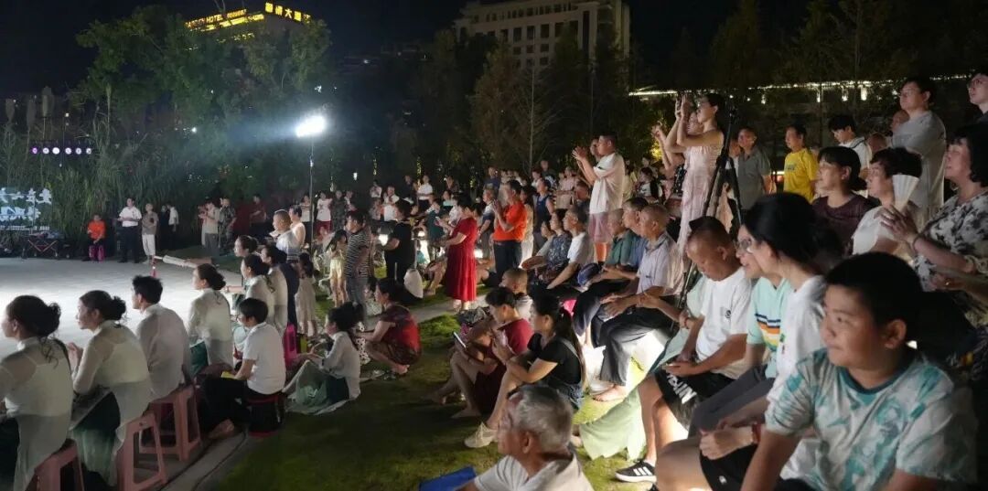 晚會(huì)現(xiàn)場(chǎng) 夜幕降臨,夢(mèng)筆文化公園在月光與燈光的交相輝映下更顯詩意,親水平臺(tái)前早早坐滿了前來觀看演出的群眾。 晚會(huì)在夢(mèng)筆生花民樂團(tuán)激昂澎湃的器樂合奏《邊疆處處賽江南》中拉開帷幕,隨后,歌伴舞《我愛你中國(guó)》表達(dá)了對(duì)祖國(guó)的熱愛與祝福;詩朗誦《九三閱兵頌》鏗鏘有力的詞句謳歌了革命精神與時(shí)代風(fēng)采;紅歌聯(lián)唱《紅梅贊》《映山紅》等經(jīng)典曲目,喚起觀眾對(duì)崢嶸歲月的深情回憶;舞蹈《雨巷佳人》,舞姿柔美,如詩如畫……