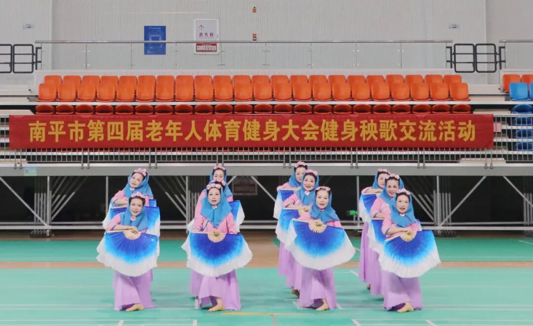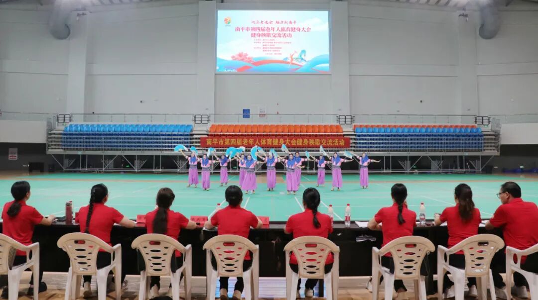 比賽現場 本次交流活動共有南平市各縣市區的8支代表隊參與,他們分別是:延平區、建陽區、武夷山市、邵武市、浦城縣、順昌縣、松溪縣、光澤縣。各參賽隊伍精神飽滿,神采飛揚,伴隨著歡快的音樂節奏,將健身秧歌的獨特魅力與老年人的矍鑠精神展現得淋漓盡致。隊員們動作整齊劃一,舞步流暢優美,既有傳統秧歌的韻味,又融入了時代健身的元素,充分體現了科學健身、快樂生活的理念,贏得了現場觀眾的陣陣掌聲。