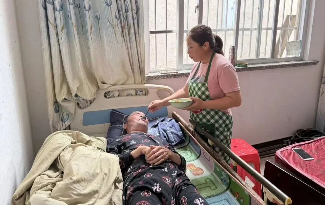 劉壽芝,1989年4月出生在仙陽鎮(zhèn)太平村一個普通的農(nóng)民家庭,自幼被養(yǎng)父劉讓明收養(yǎng)。雖非親生,養(yǎng)父給予了她足夠的關(guān)愛和溫暖。可命運卻早早地給她出了難題,13歲那年,母親不幸離世,家庭的溫暖驟然減半,養(yǎng)父獨自承擔起撫養(yǎng)她的重任,含辛茹苦將她拉扯成人。這樣特殊的成長經(jīng)歷,讓劉壽芝早早體會到生活的艱辛,也在她心中種下了堅韌不拔、知恩圖報的種子。2007年,劉壽芝嫁入管厝鄉(xiāng)黨溪村,與丈夫廖曽飛組建了自己的小家庭。婚后,兩人攜手,養(yǎng)育了兩女一兒,日子雖不富裕,卻充滿了奮斗的希望,一家人對未來滿懷憧憬。 為了給家人創(chuàng)造更好的生活條件,十多年前,劉壽芝夫婦前往上海打拼,投身石材生意。他們憑借著吃苦耐勞的精神和誠信經(jīng)營的理念,每年能有五六萬元的收入,慢慢積累下財富。他們用攢下的錢在老家翻蓋起一棟三層小洋房,一家人的生活環(huán)境得到了極大改善,日子也漸漸朝著光明的方向邁進。 然而,命運的考驗卻接踵而至。2019年,養(yǎng)父劉讓明在上海突發(fā)腦梗,經(jīng)過緊急搶救,雖保住了生命,卻落下了全身癱瘓的后遺癥,生活完全不能自理,須要有人24小時貼身照料。一邊是急需照顧的養(yǎng)父,一邊是剛步入正軌的生意,面對這兩難的抉擇,劉壽芝夫婦沒有絲毫猶豫。在他們心中,“百善孝為先”的信念早已根深蒂固,他們毅然決然地低價轉(zhuǎn)讓了上海的生意,帶著癱瘓的養(yǎng)父回到了家鄉(xiāng)黨溪村,全身心投入到照顧養(yǎng)父的生活中。“錢沒了可以再賺,但父親的恩情不能等,照顧他安度晚年是我這輩子必須盡到的本分。”劉壽芝的話語樸實無華,卻滿含對養(yǎng)父的感恩與孝心。