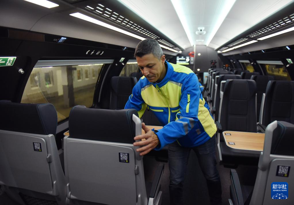 11月3日,在奧地利維也納,奧地利西部鐵路公司員工在車廂內調整座椅靠背。 由中國企業制造的雙層列車日前在奧地利首都維也納亮相,將用于維也納與薩爾茨堡兩座城市間客運鐵路運營。這是中國制造雙層列車首次正式投入奧地利客運鐵路系統。 新華社記者 賀燦鈴 攝 |