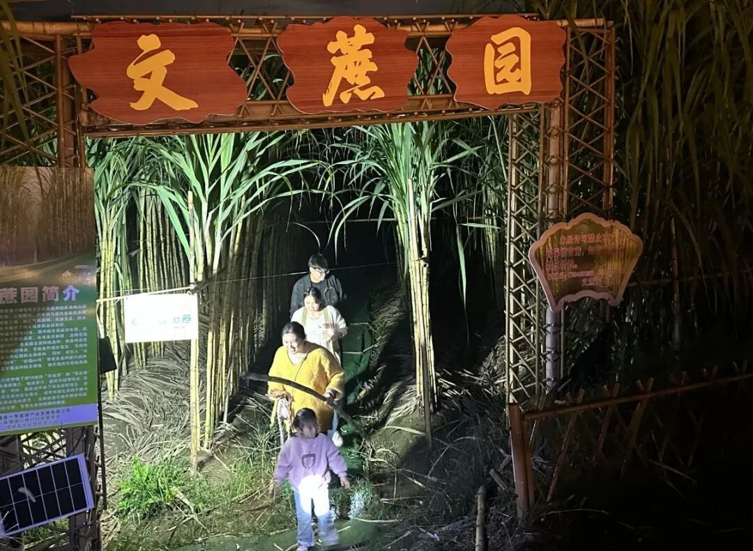 “甘蔗奇兵”游戲現場 夜幕下的山橋村文蔗園入口處已聚集了數十名游客。頭燈、小鋤頭、削皮刀,裝備齊全的“蔗夜奇兵”們躍躍欲試,準備潛入這片青綠蔗林展開一場別開生面的“偷蔗”行動。月光下的蔗林沙沙作響,頭燈的光束在夜色中交錯,手起刀落間,一根根甘蔗應聲倒下,歡笑聲回蕩在田野。