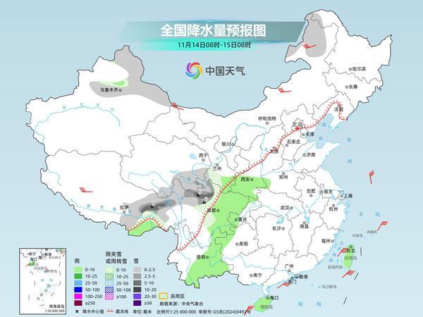 明天,新疆北部、內(nèi)蒙古東北部、西藏南部和東部、西北地區(qū)中部、甘肅南部、西南地區(qū)北部、四川盆地西南部等地部分地區(qū)有小雪或雨夾雪,其中,西藏東部、川西高原北部等地部分地區(qū)有中到大雪。西藏南部、甘肅南部、陜西中南部、河南西部、四川盆地中東部和西部、重慶西部、貴州西北部、云南中東部和西南部、海南島、臺(tái)灣島等地部分地區(qū)有小雨。