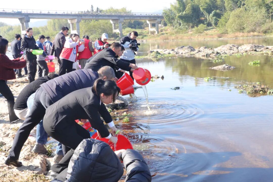 浦城正大生化有限公司聯合多部門開展南浦溪增殖放流活動